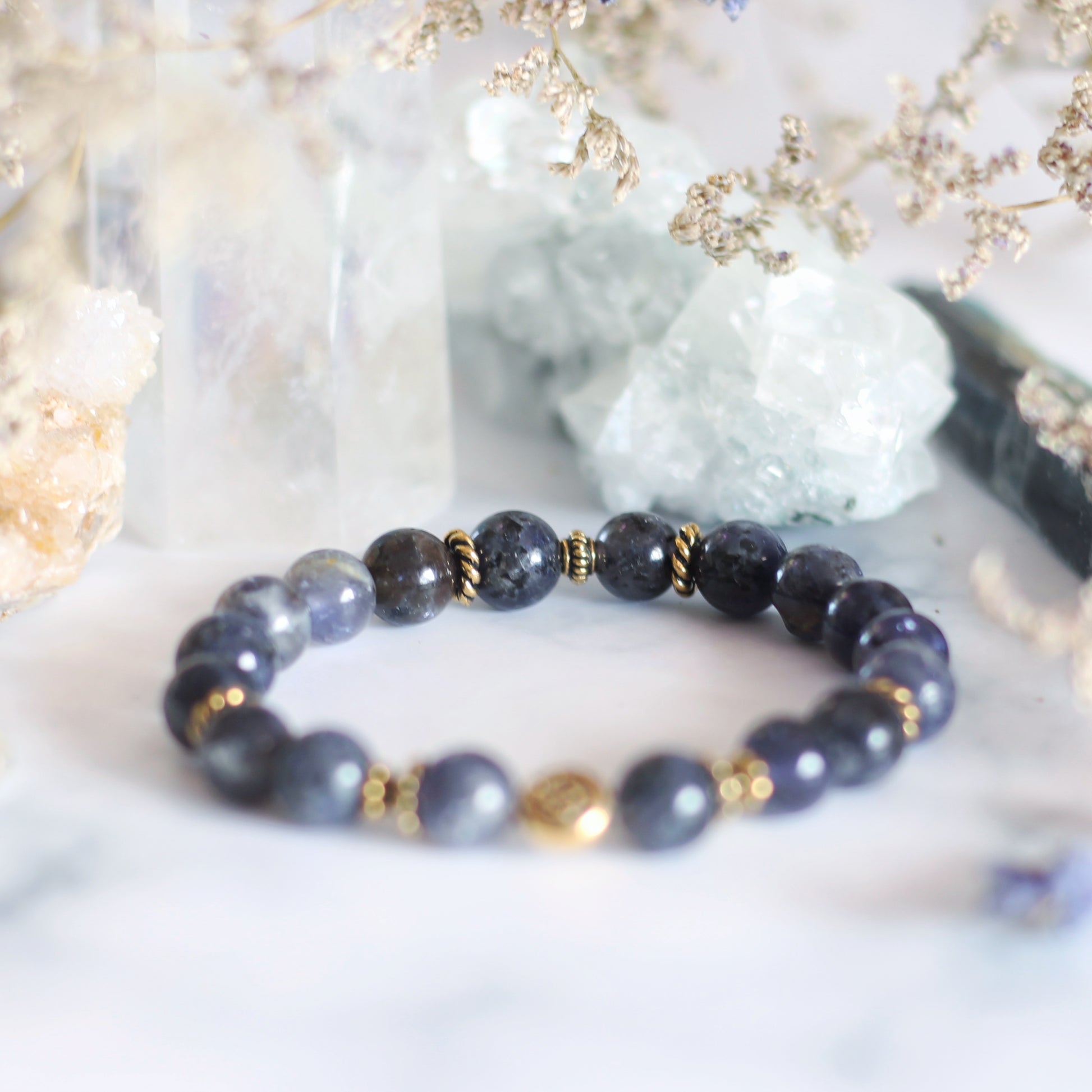 Iolite is also known as "water sapphire"; aids focus and imagination; bringing a broader perspective to life; stimulates responsibility, practicality, orderliness and creativity; powerful crystal for self-reflection and release of suppression