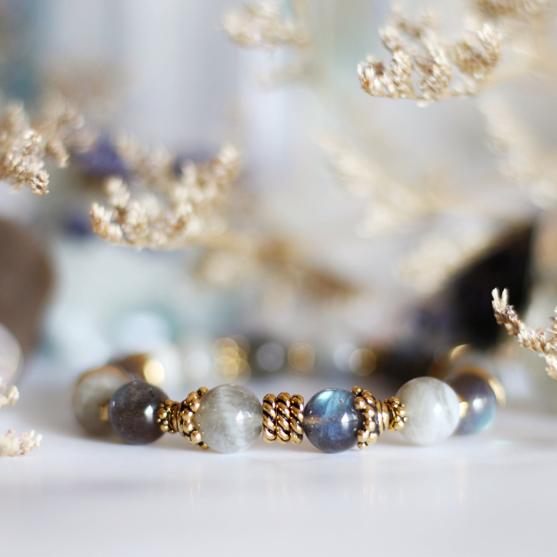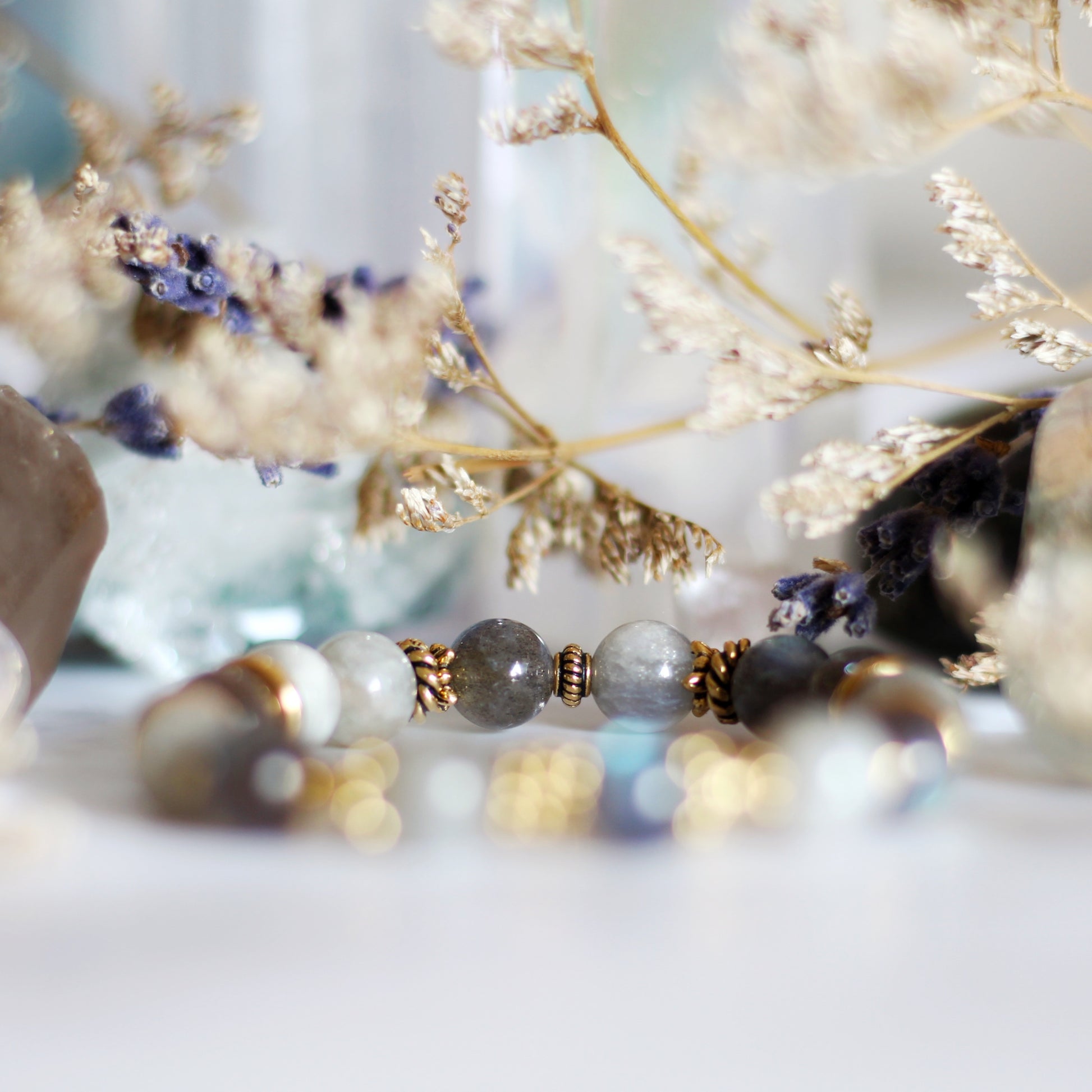 Grey Moonstone (8mm) & Labradorite (Grade AAA / 8mm)