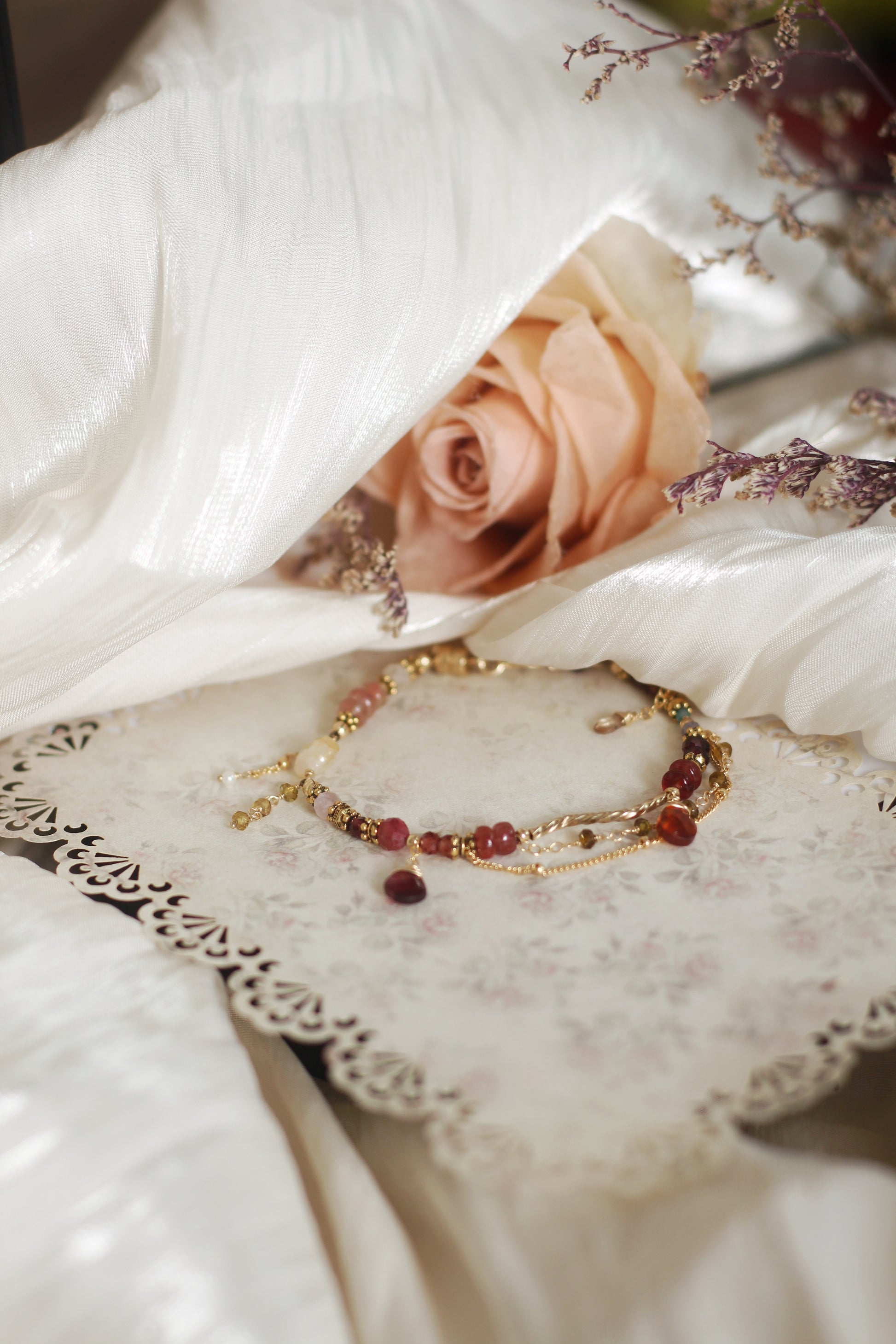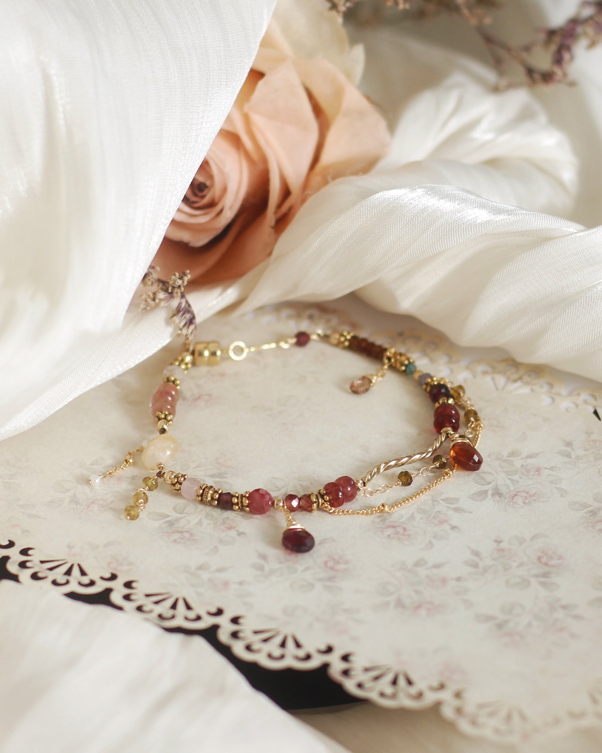 Garnet (3mm facet round, 5mm facet rondelle)