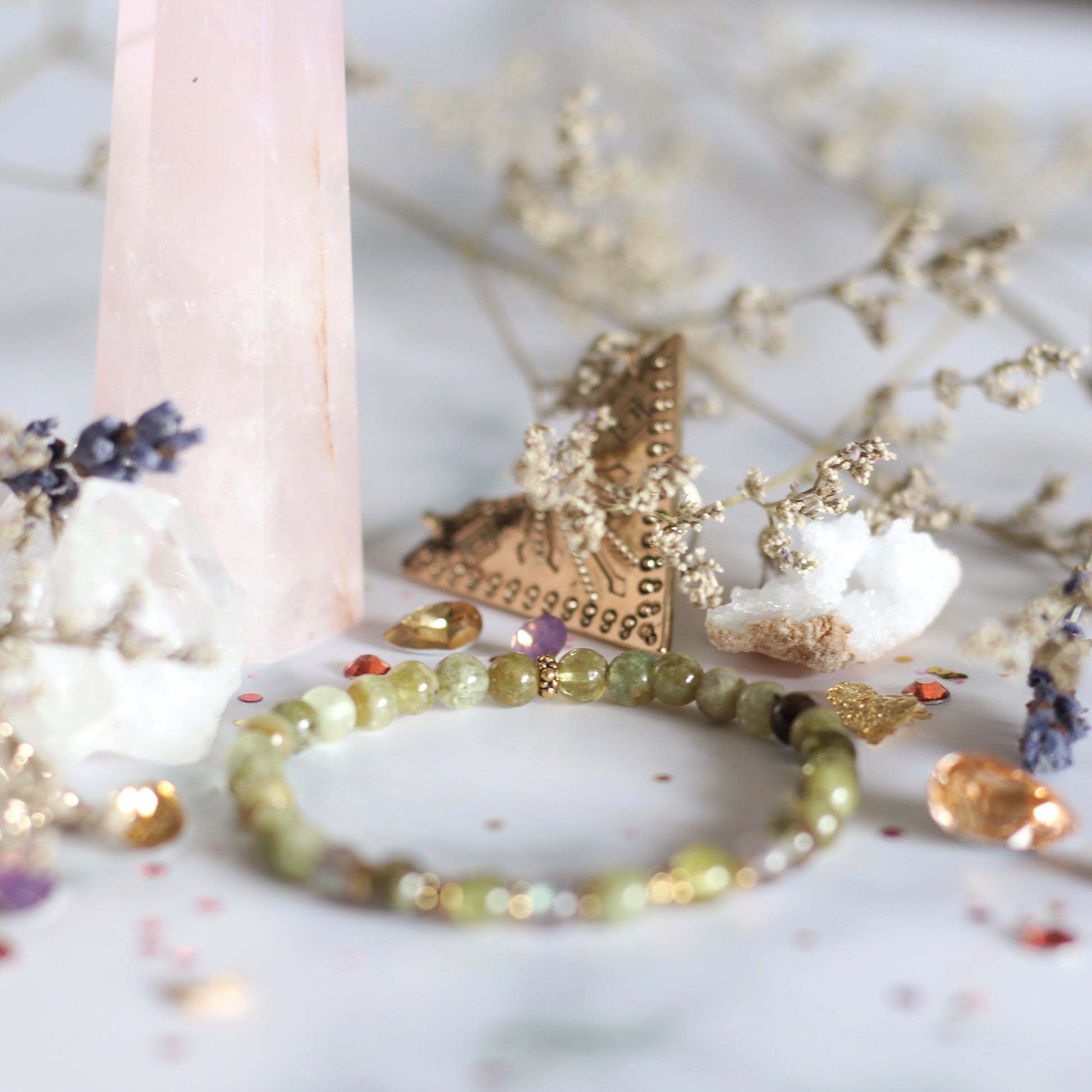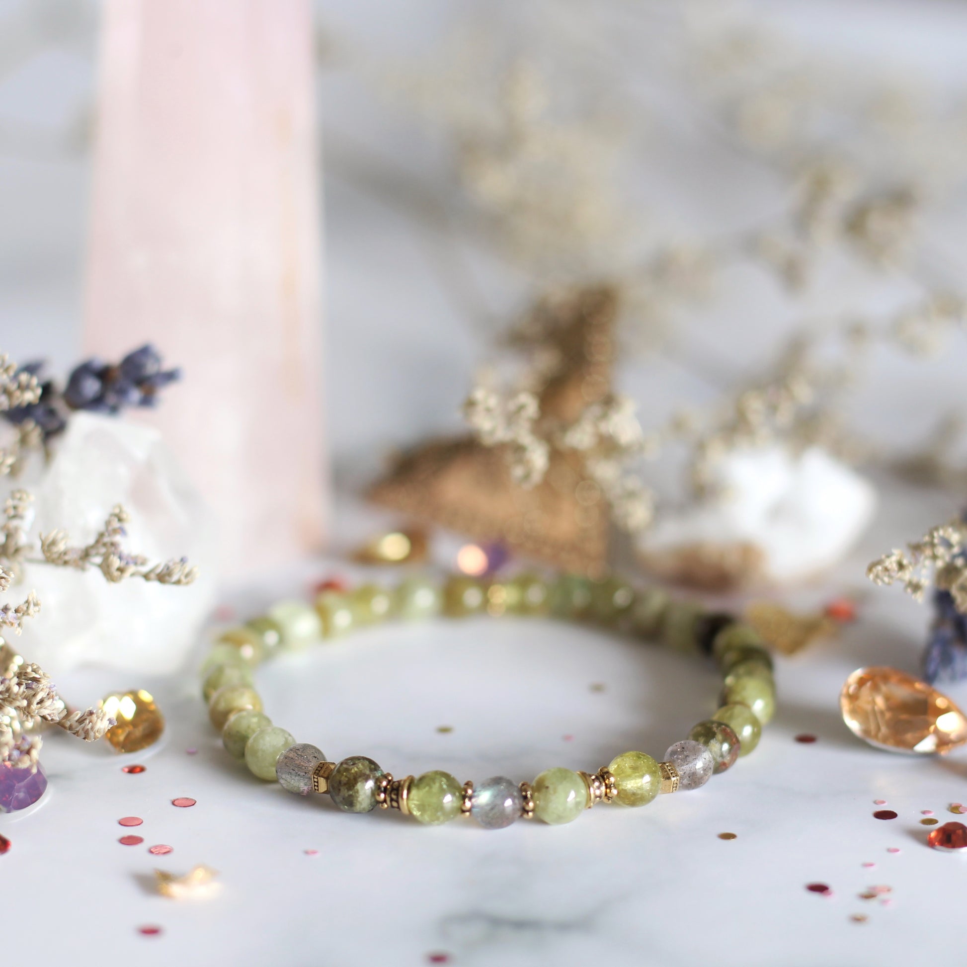 Green Garnet (5mm) with Labradorite (5mm)