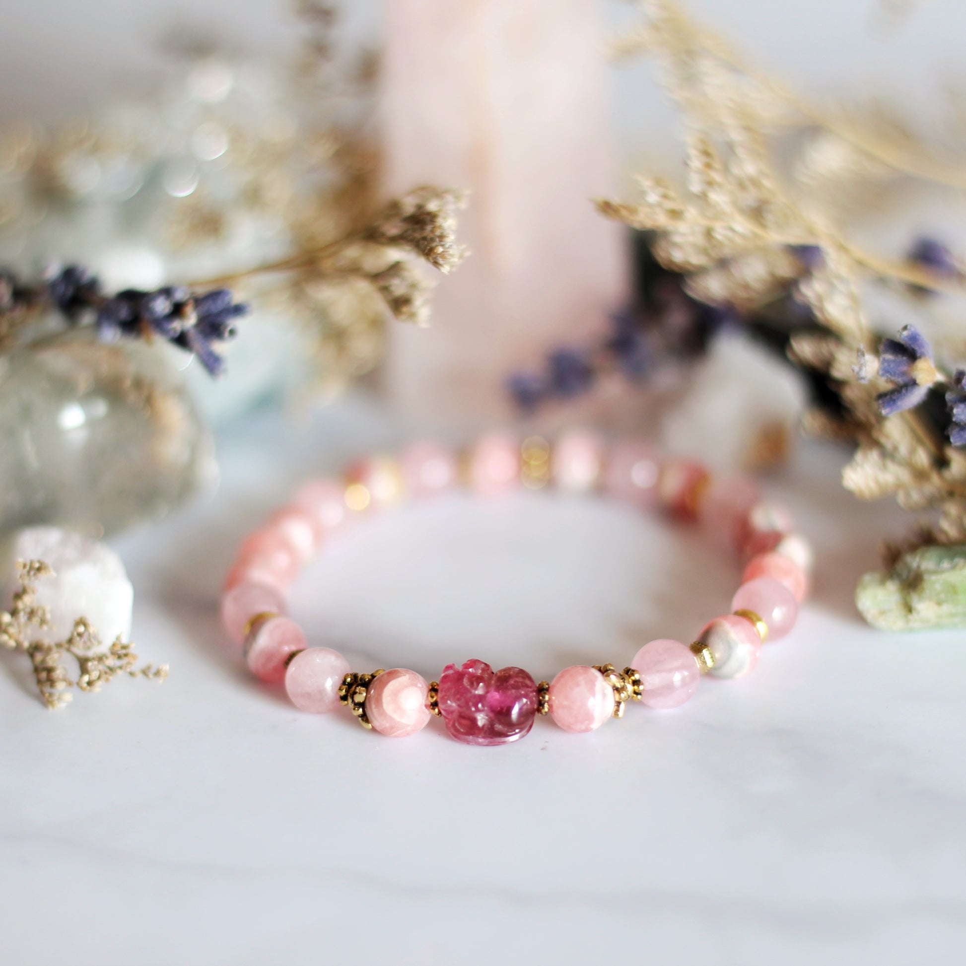 Rhodochrosite (6mm) and Rose Quartz (Grade A / 6mm)