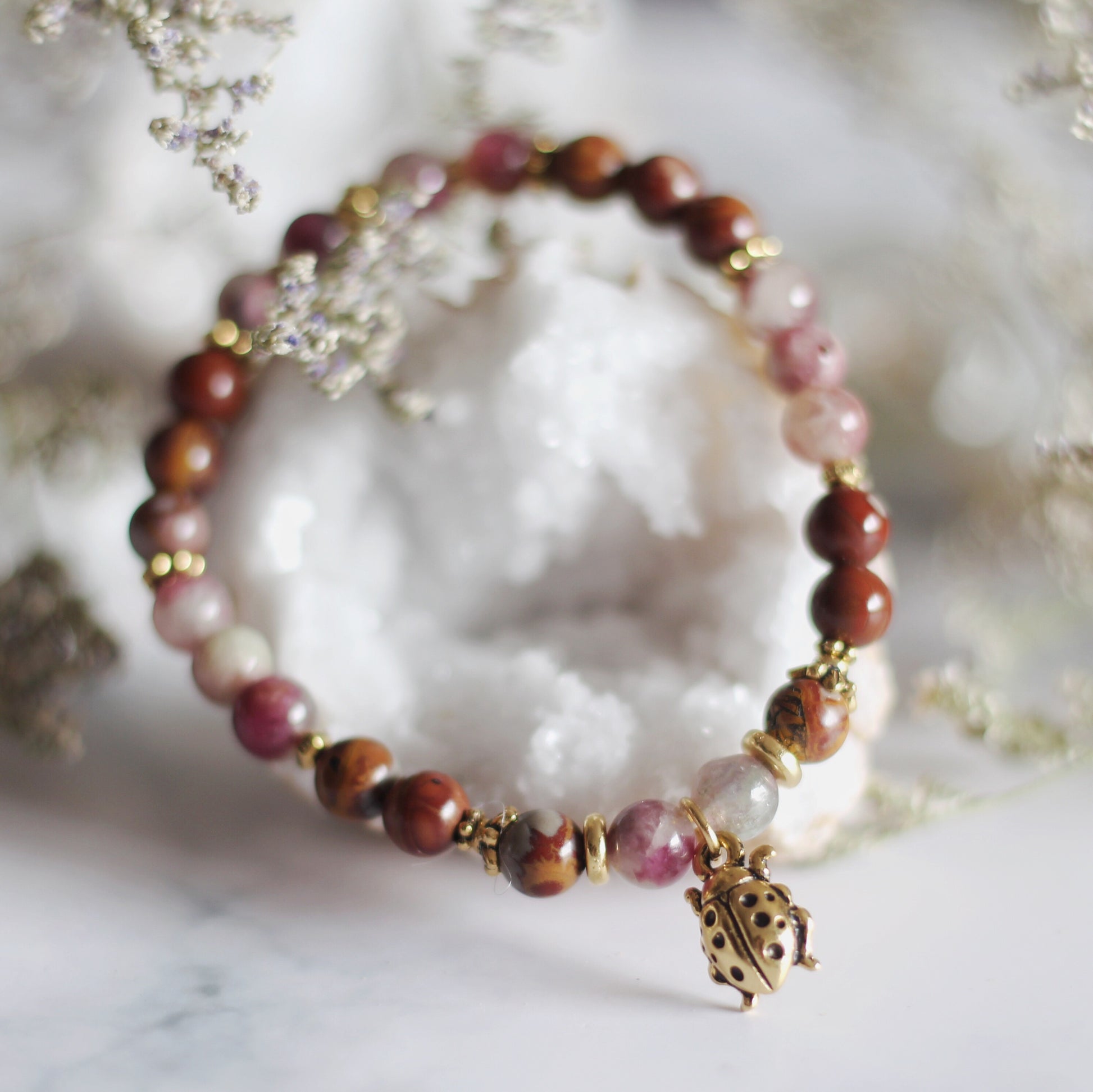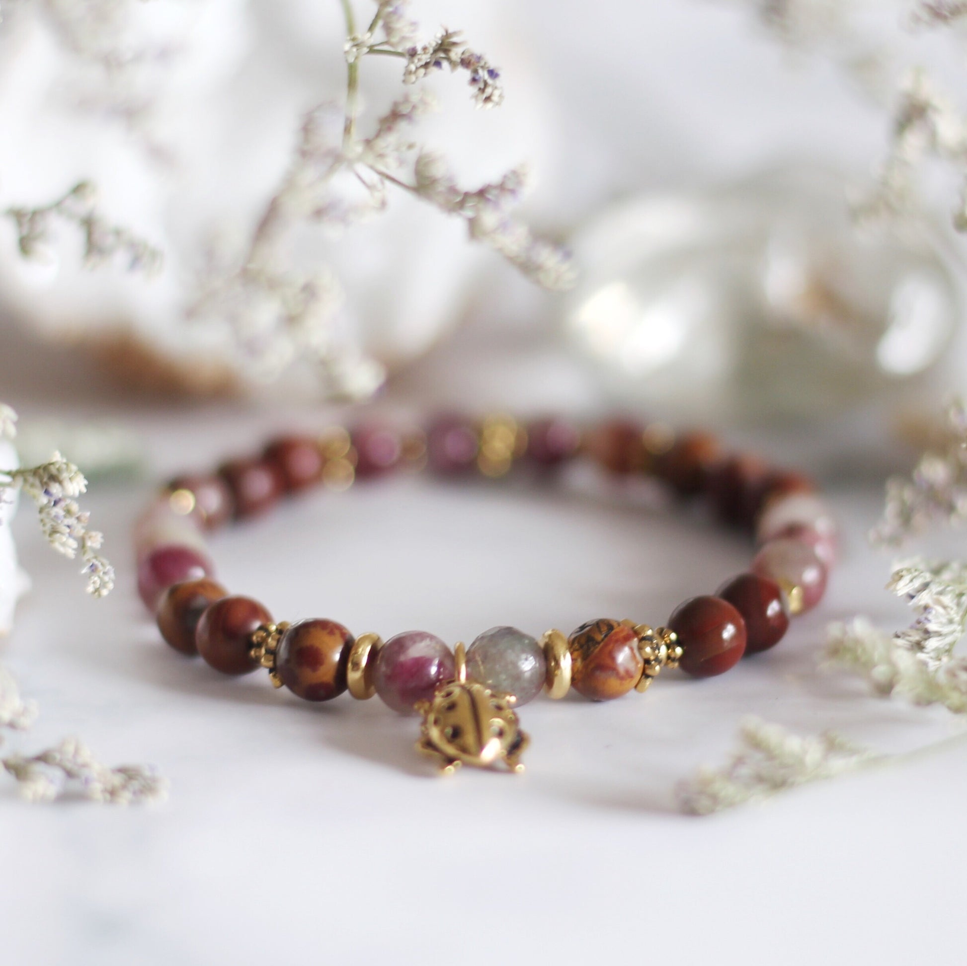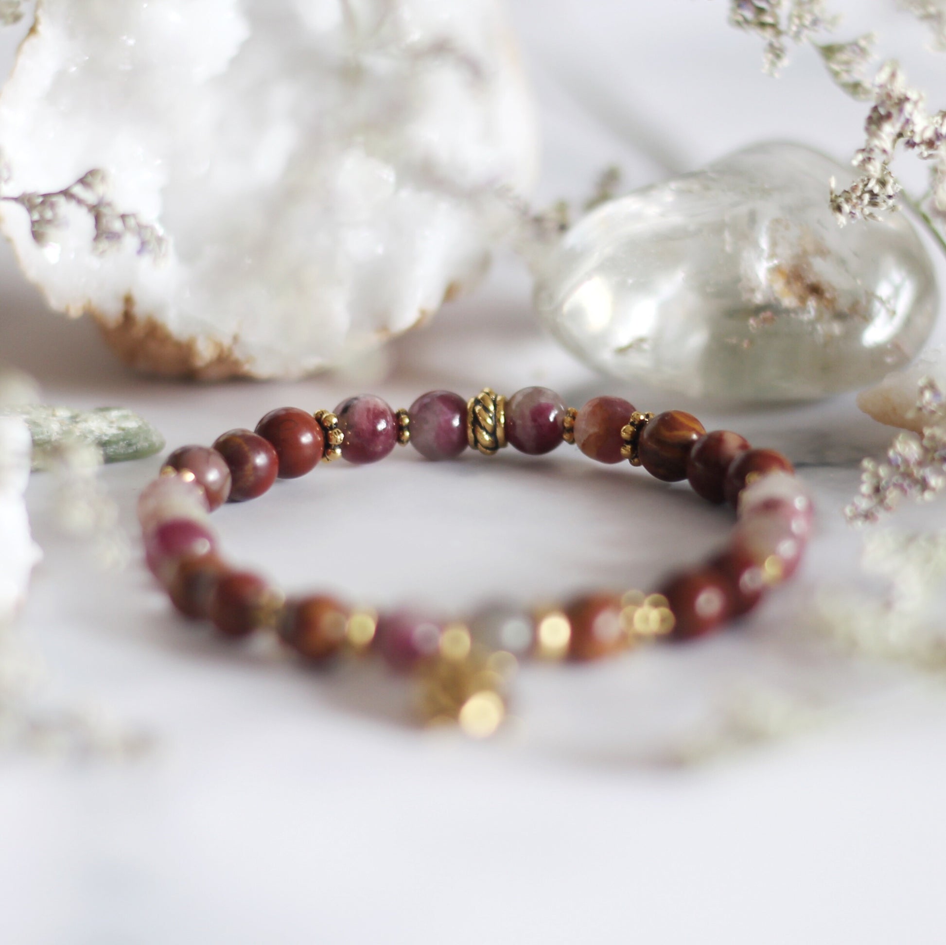 with high-quality natural stones, elastic threads, and metal components.