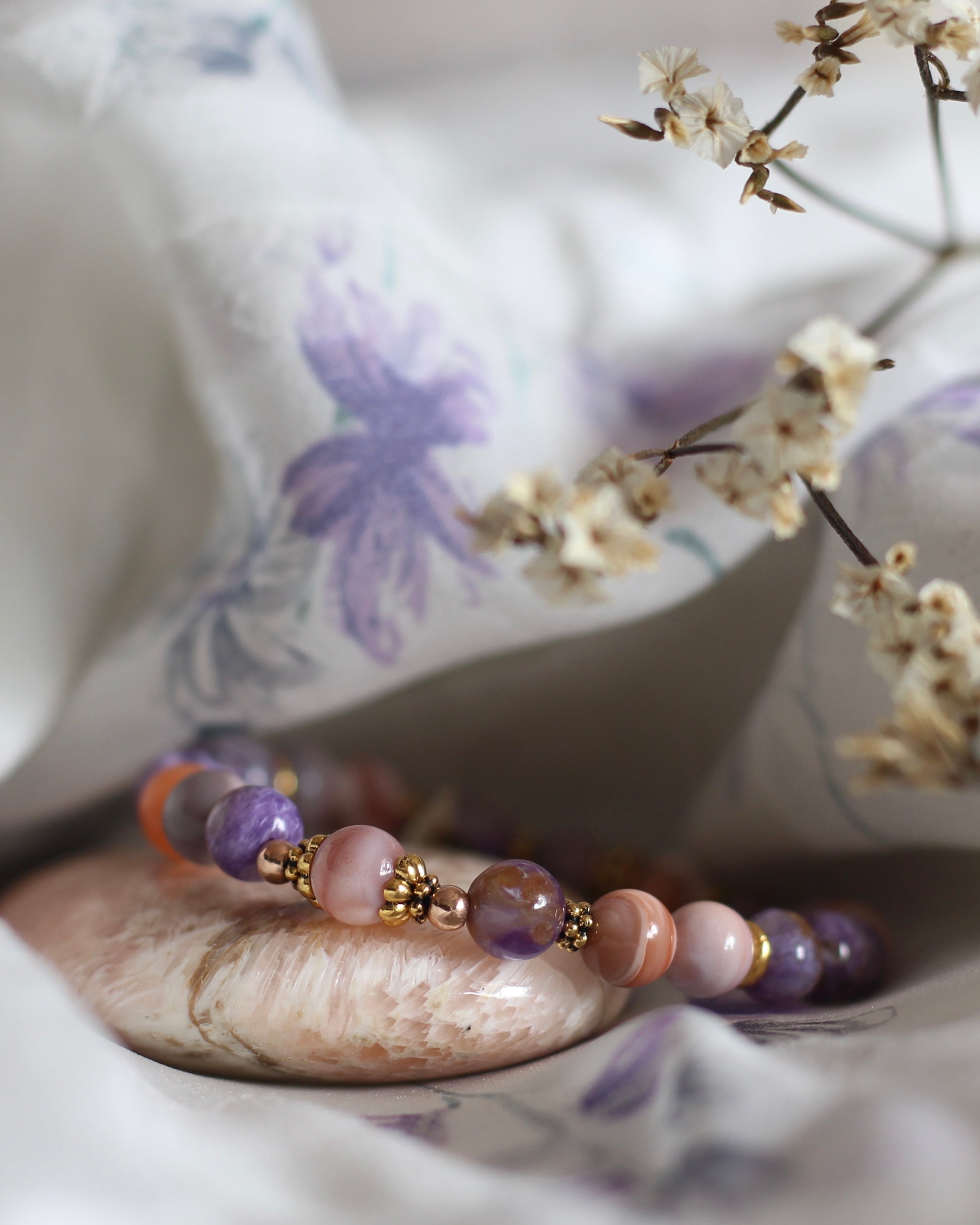 Charoite (6mm) and Pink Botswana Agate (6mm)
