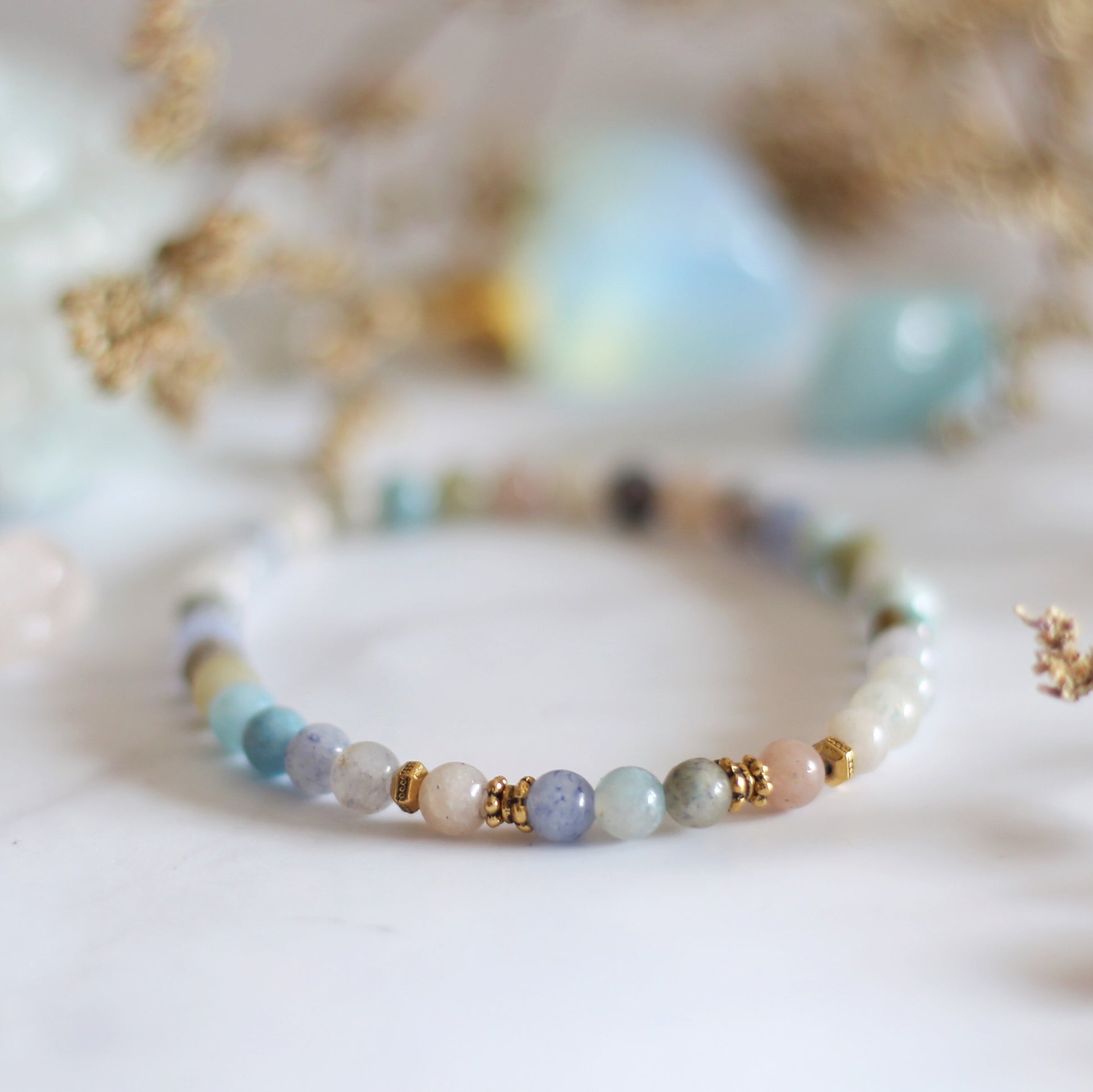 Please note that no two beads are the same. The colours and textures will vary for each bracelet.