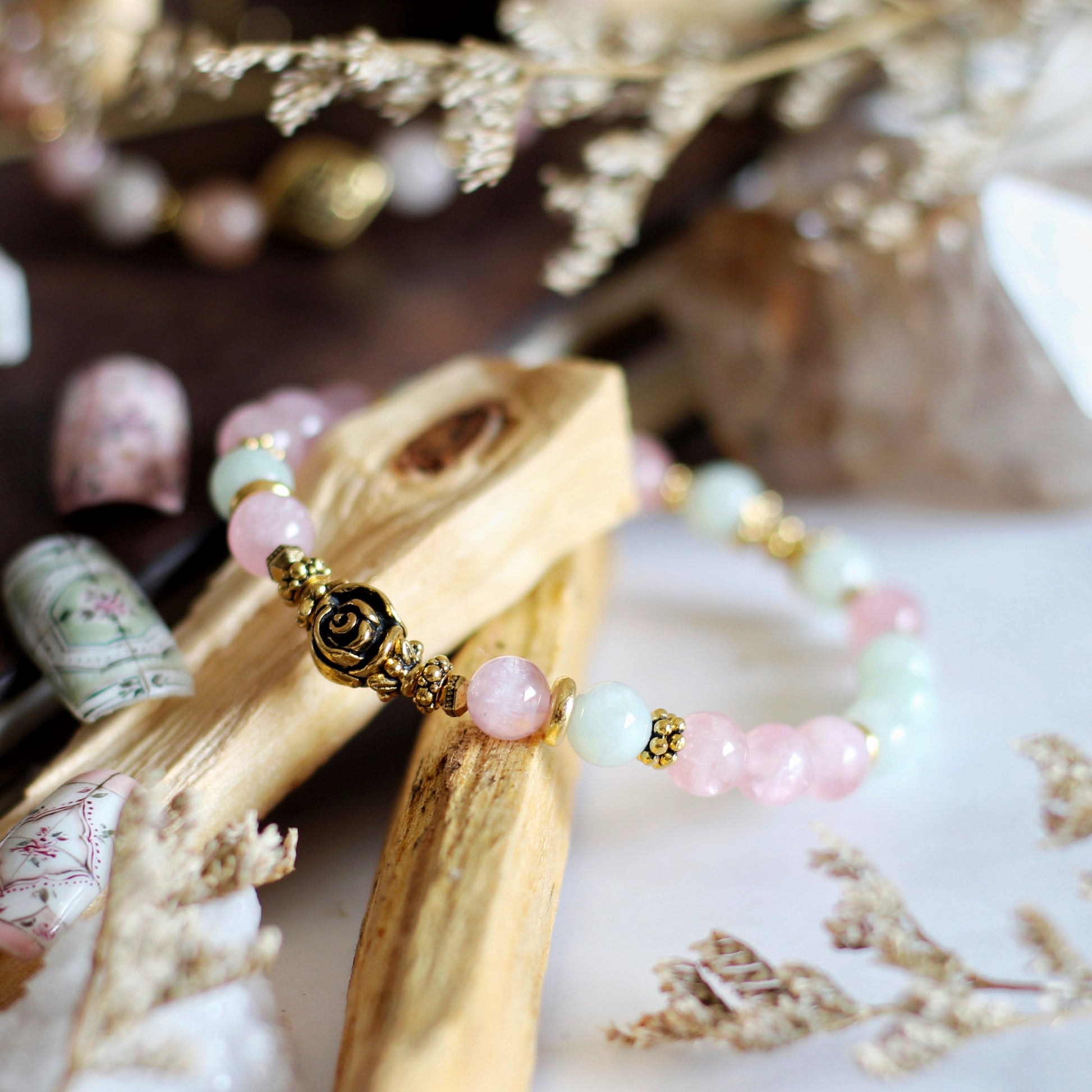 Rose Quartz (Grade A / 6mm) and Burma Jade (Type A / 6mm)